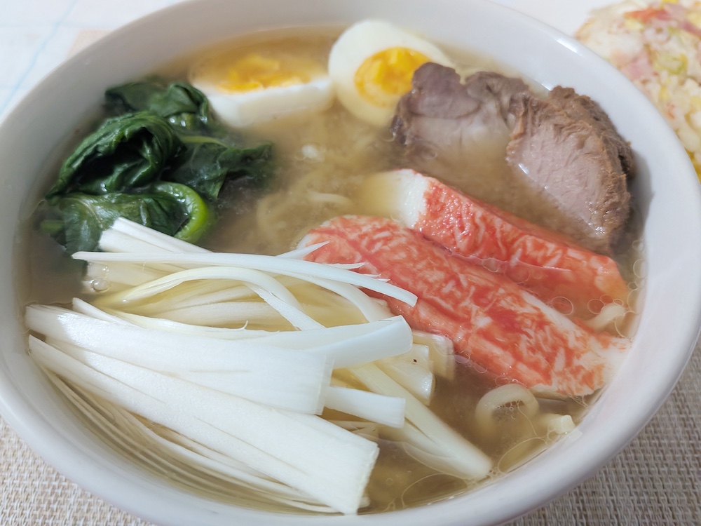 「素ラーメン」だと、味気ないので、具材(トッピング?)は、こんな感じ。